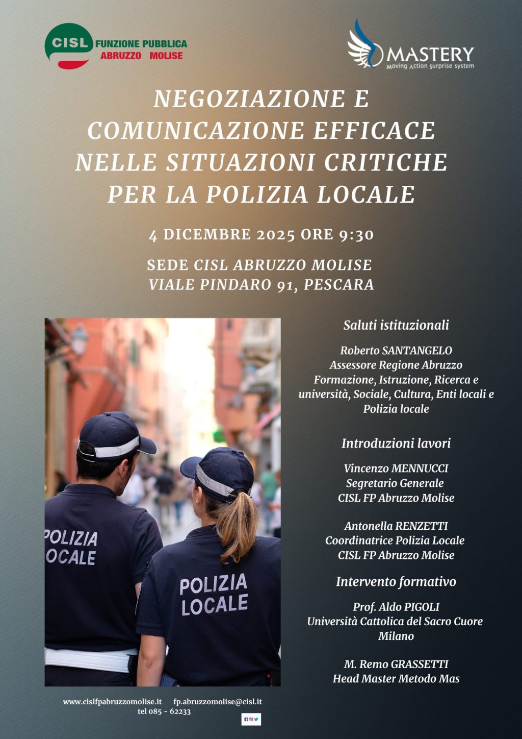 Gestire il conflitto, comunicare con efficacia: la Polizia Locale si forma con la CISL FP